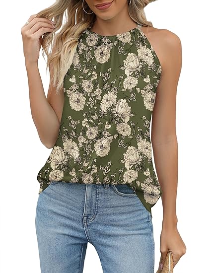 Summer Halter Tank Tops for Women Loose Fit Pleated Tie Back Sleeveless Tops Casual