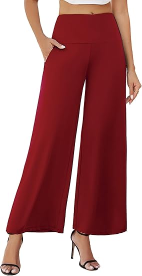 Women's Stretchy Wide Leg Palazzo Lounge Pants with Pockets Casual Comfy High Waist Palazzo Pants for Women Dressy
