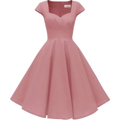Women's Cap Sleeve 1950s Retro Vintage Cocktail Swing Dresses with Pocket