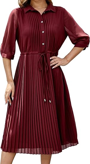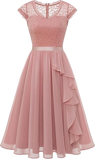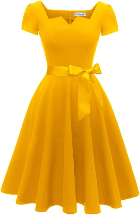 Women's Vintage Tea Dress, Short Sleeve Cocktail Party Dress Work Church Casual Dress