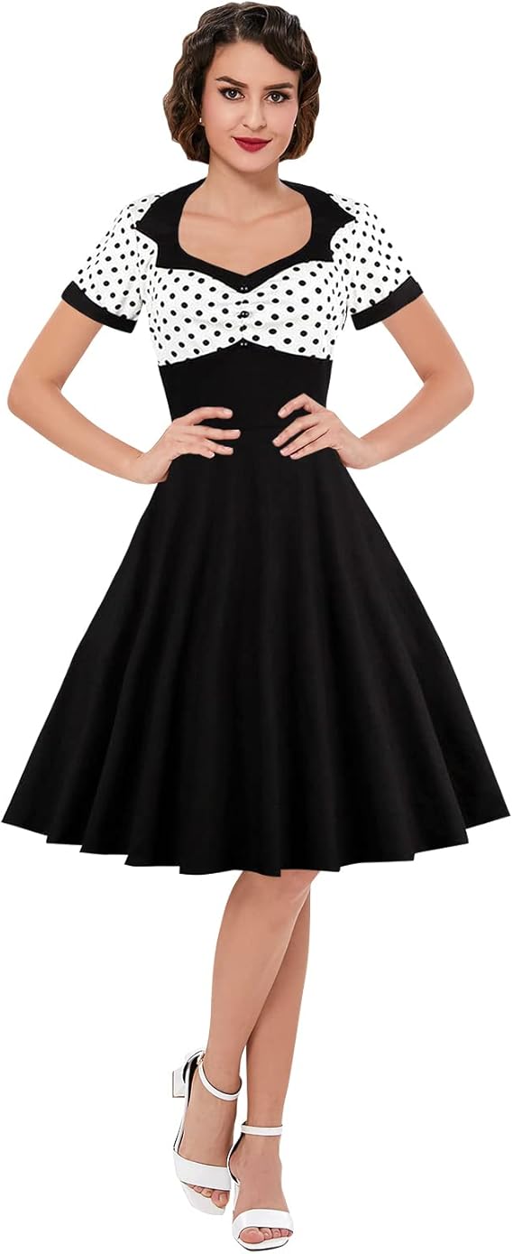 Women's Polka Dot Retro Vintage Style Cocktail Party Swing Dress