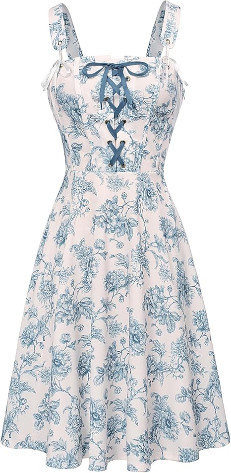 Womens Floral Dress 2024 Sleeveless Victorian Corset Sundress with Pockets Summer Beach Vacation Dresses