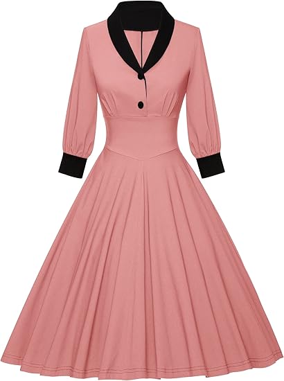 Vintage Dresses 3/4 sleeves Cocktail Swing Dress with pockets