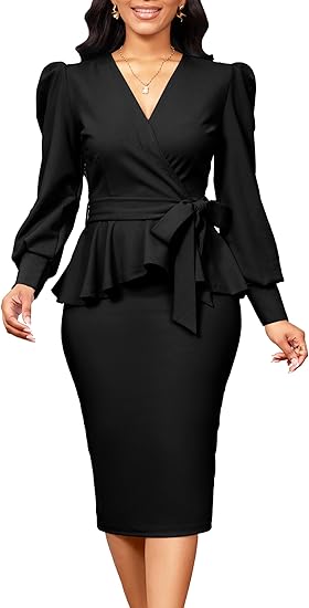 Elegant Dresses for Women Sexy Church Long Ruffles Sleeve Business Pencil Vintage Peplum Dress Wear to Work