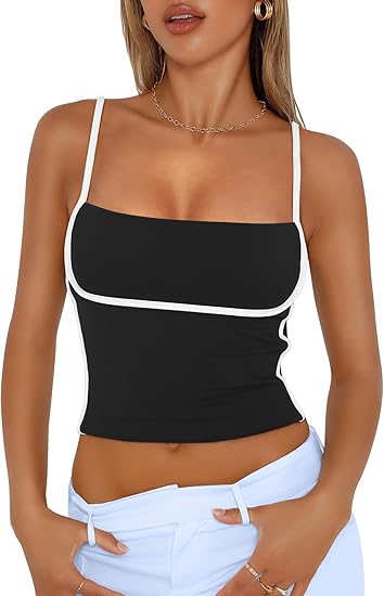 Womens Camisole Tank Tops with Adjustable Spaghetti Strap Cute Summer Going Out Crop Tops