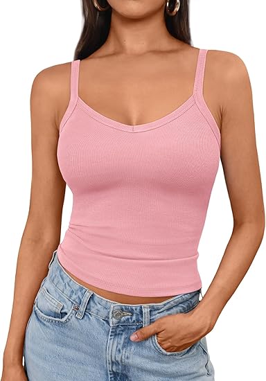 Womens Tank Top for Women Ribbed Sleeveless Racerback V Neck Sapghetti Strap Cropped Tops Camisole Knit Layering Tees