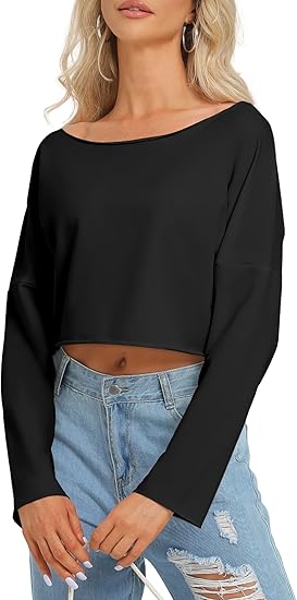Long Sleeve Crop Top Y2K Cute Going Out Tops Off The Shoulder Shirts Roll Hem Basic Tees Trendy Fall Outfits 2024