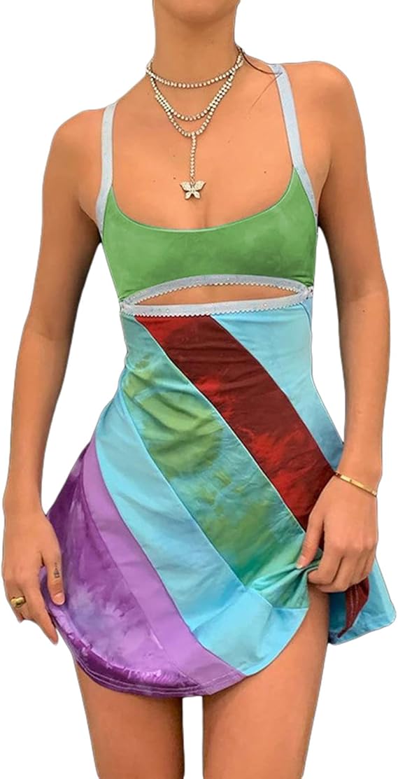Women's Vintage Print Semi-Sheer Sheath Dress 2004s Fashion Bodycon Mini Slip Dress Retro Bandana Print Fitted Strap Dress