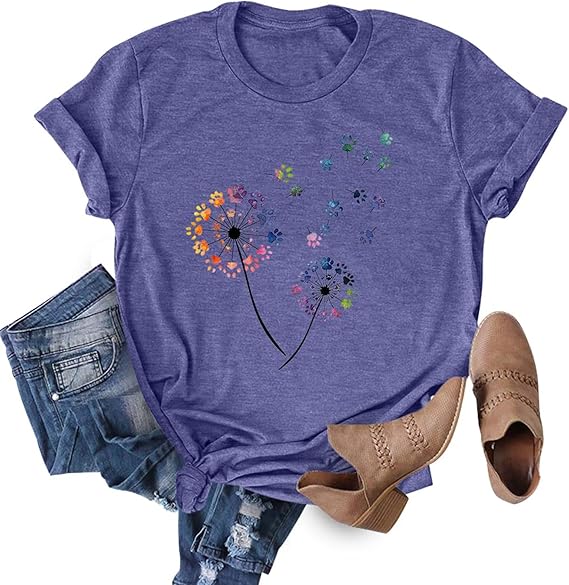 Womens Dandelion Graphic T-Shirts Teen Girls Cute Sunflower Print Casual Tee Tops
