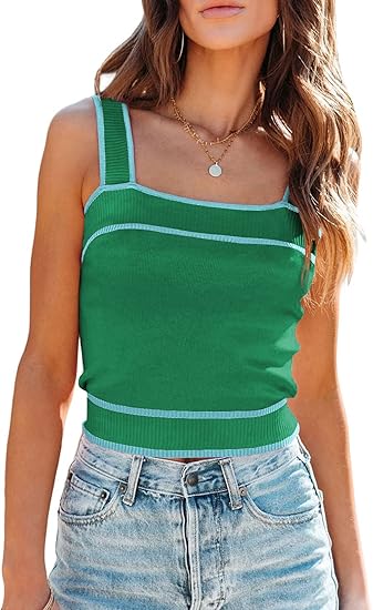 Women's Square Neck Knit Crop Tank Tops 2024 Slim Fit Y2K Color Block Sleeveless Cami Shirts