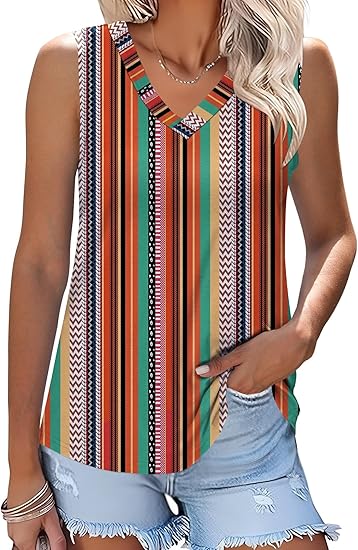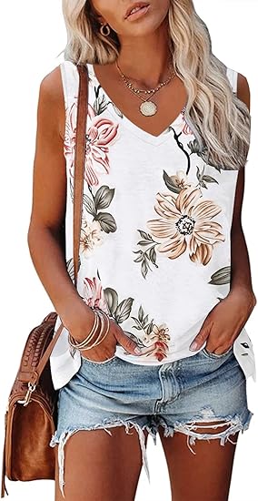 Women's V Neck Tank Top Casual Sleeveless Shirts Cute Summer Tees