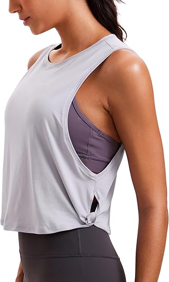 Pima Cotton Cropped Tank Tops for Women - Sleeveless Sports Shirts Athletic Yoga Running Gym Workout Crop Tops