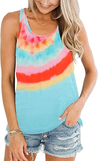Womens Summer Tank Tops Tie Dye Racerback Vest Rainbow Shirts Sleeveless Summer Tops Casual Vacation Tanks