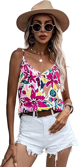 Women's V Neck Floral Print Cami Tank Top Sleeveless Blouse Shirt
