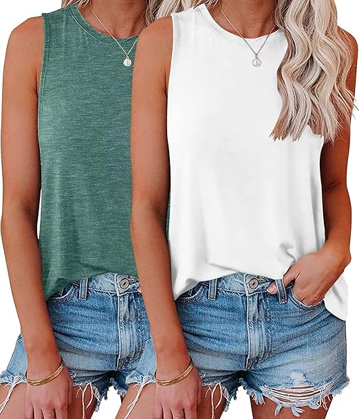 2 Pack Womens Tank Tops Crew Neck Sleeveless Summer Cute Tops Loose Fit Basic Workout Casual Shirts 2024 Fashion Clothes