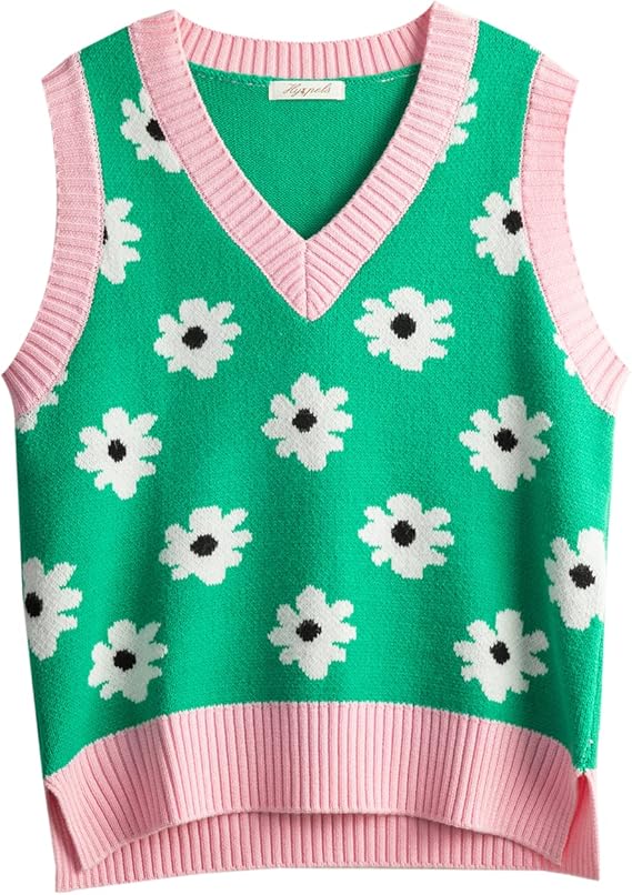 Women's Sweater Vest,Y2K Sleeveless Pattern Preppy Style Knitted Crop Tank Top for Girl