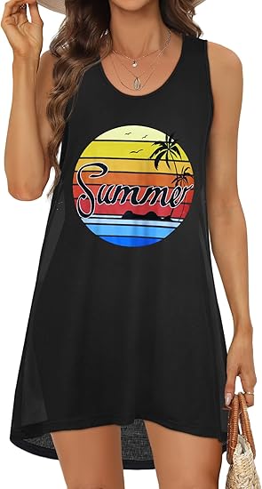 Womens Swimsuit Cover Up Summer Sleeveless T-Shirt Beach Dress Tank Bikini Coverups